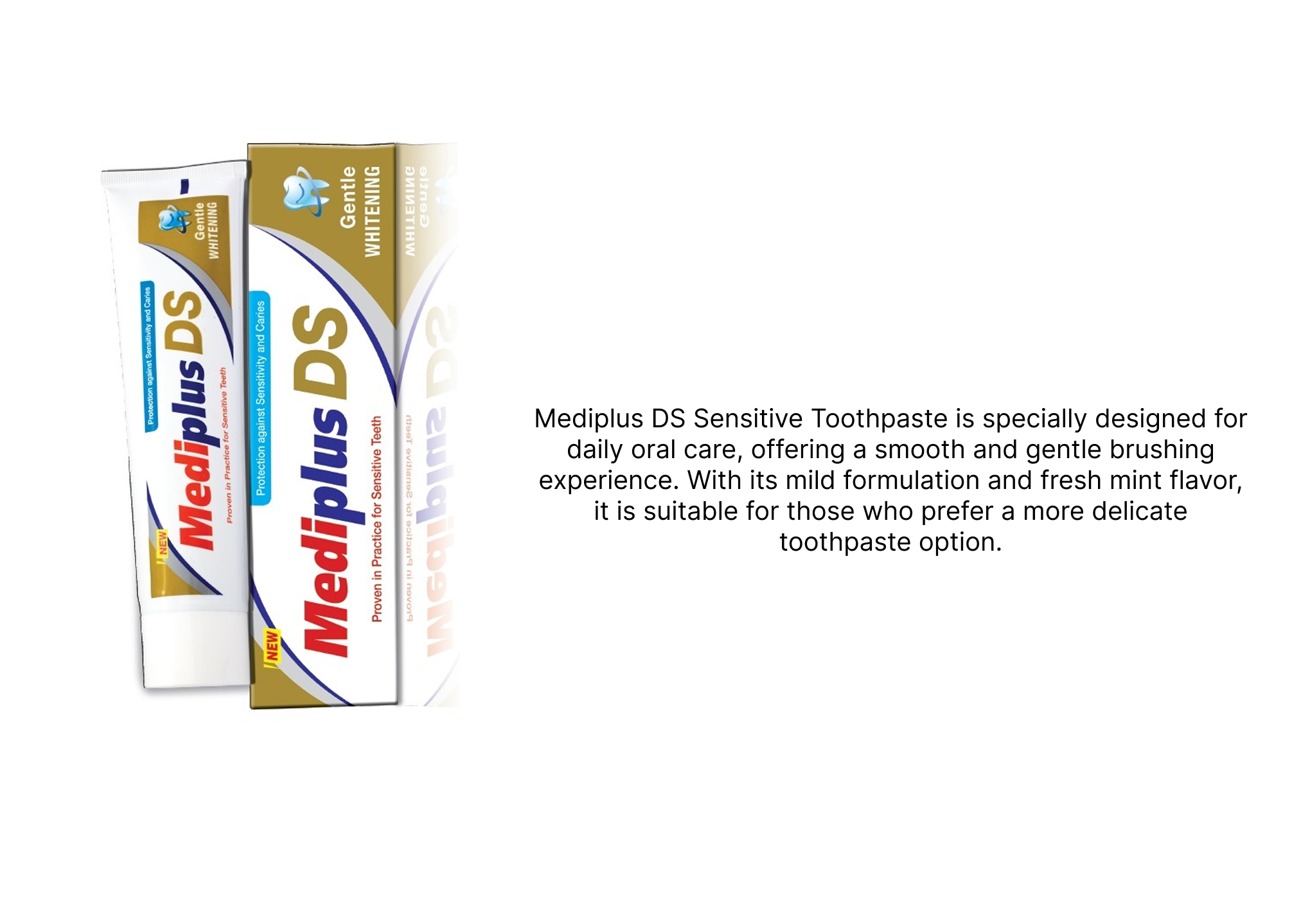 Mediplus DS Sensitive ToothpasteΒ is specially designed for daily oral care, offering a smooth and gentle